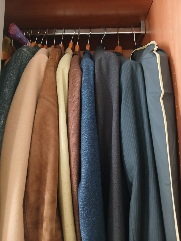1. My wardrobe. I recently became aware that classic menswear is apparently having a moment, not that you would know from observing the average British street. I don’t collect clothes in the sense of wanting ever more – but there is something undeniably satisfying about assembling and then maintaining a meaningful and coherent wardrobe. This has become stronger as I have learned more about Italian tailoring which is my preferred style. It is perhaps easier for men, inasmuch as their classic style has a stronger code than the relative freeform of female scene, and thus it is perhaps a little easier to know what is needed. I will admit that opening a wardrobe to find a considered collection of appealing things to wear is very satisfying.  I have even learned to brush my shoes regularly.