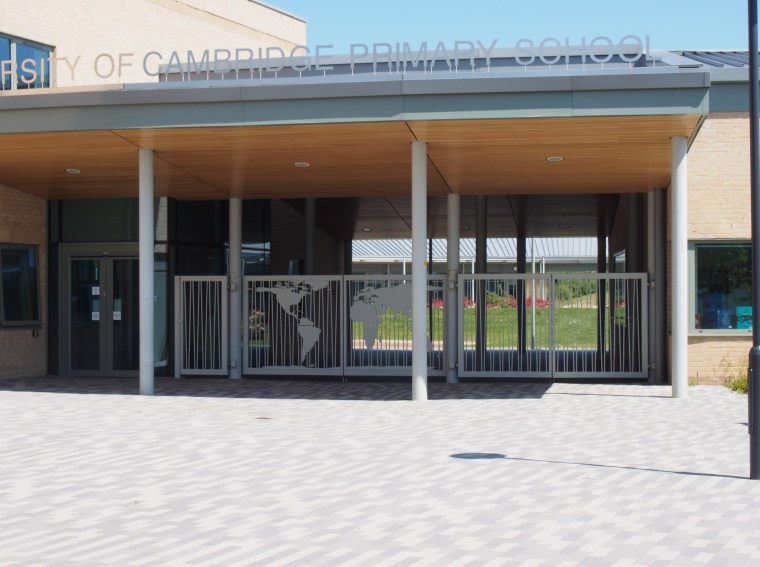 Good to see design attention being paid to public buildings. The primary school is circular, around a central green space. The metal gate sculpture is an attractive touch.